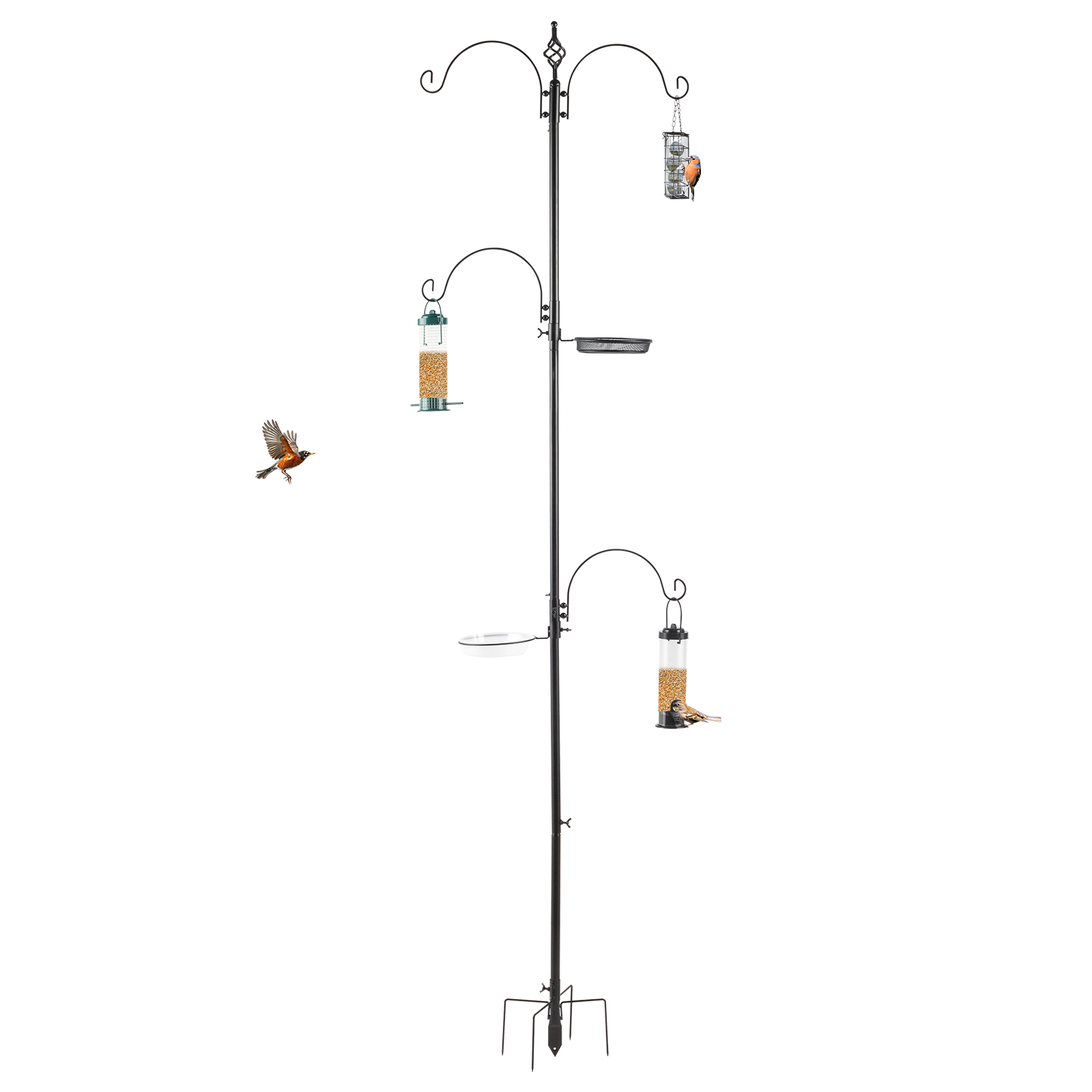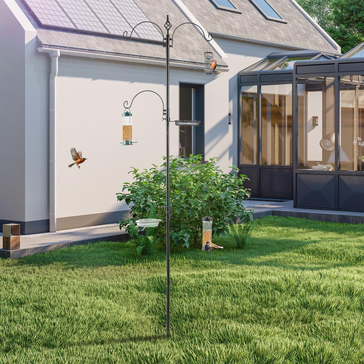 93inch Iron With Four Hooks, With Bird Feeder Black Courtyard Bird Feeder